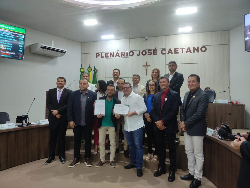 Dr. Pedro Aquino recebe moção de aplausos das mãos do vereador Maiko do Chapéu