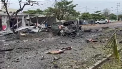 Carro explode deixando um rastro de destruição e mortos na cena.