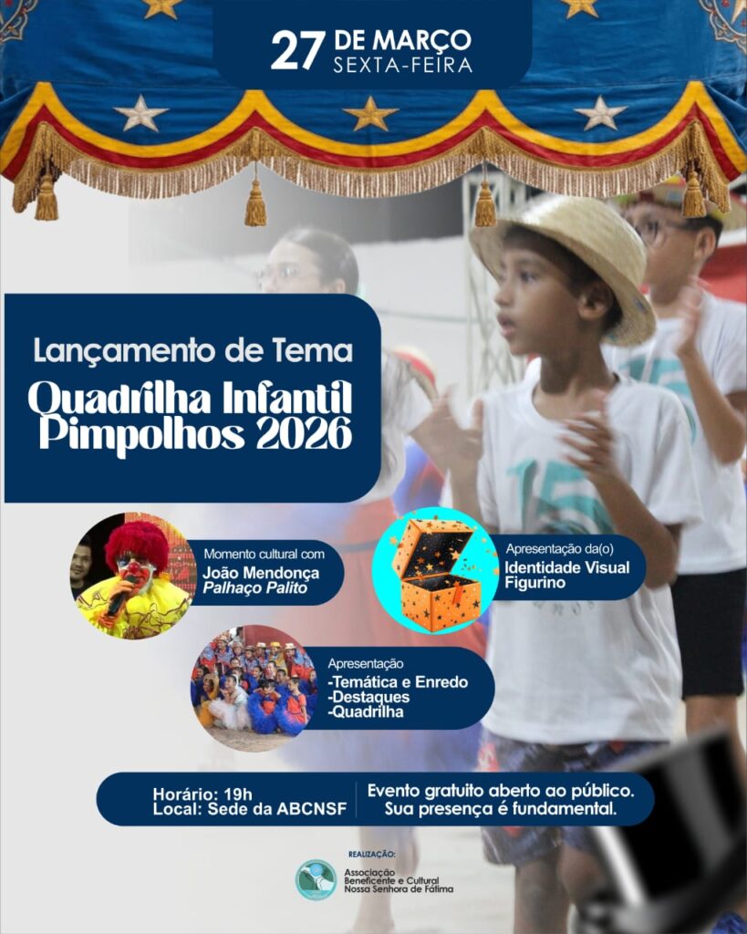 No caso da criançada da Associação Beneficente e Cultural Nossa Senhora de Fátima – ABCNSF um dos propósitos para o momento é o lançamento oficial do tema da Quadrilha Infantil Pimpolhos 2026, marcando um novo momento dessa trajetória cheia de cultura, alegria e tradição, este ano, o projeto chega ainda mais especial, com identidade visual, temática definida e a magia do nosso tão esperado casamento junino ganhando forma.