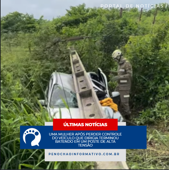 Mulher perde controle de veículo e colidi contra poste de alta tensão.
