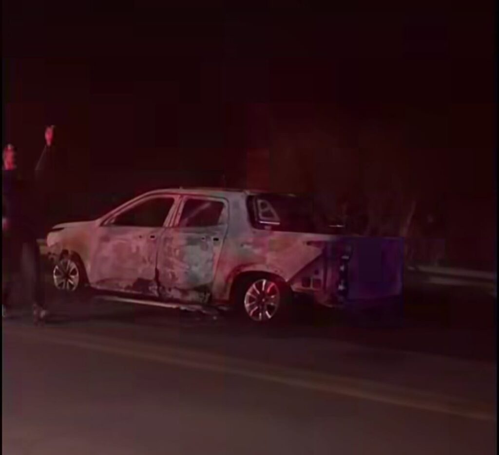 Iguatu – carro pega fogo é destruído por total, ocupantes saem ilesos.